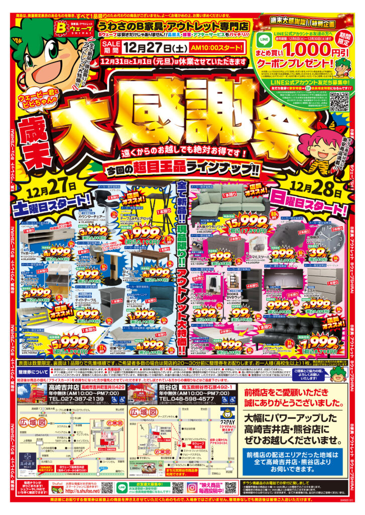 アウトレットB家具のBウェーブSHIRAI (しらい)へようこそ! アウトレットと言えども、新品で高品質のワケあり家具を お客様のお財布にも優しい価格で激安販売中だよ!