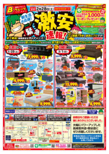 Bウェーブでは2月28日(土)午前10時より「緊急激安速報!」を