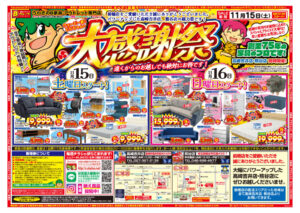 『大感謝祭!』11月15日(土)午前10時より開催です!