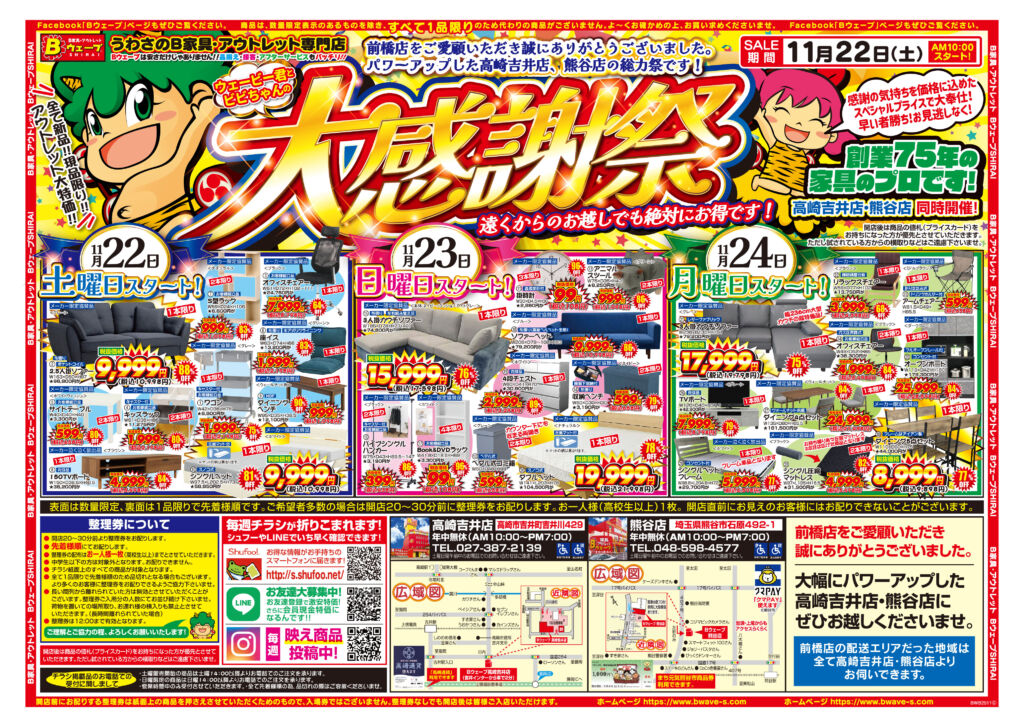 Bウェーブでは11月15日(土)午前10時より「大感謝祭!」を