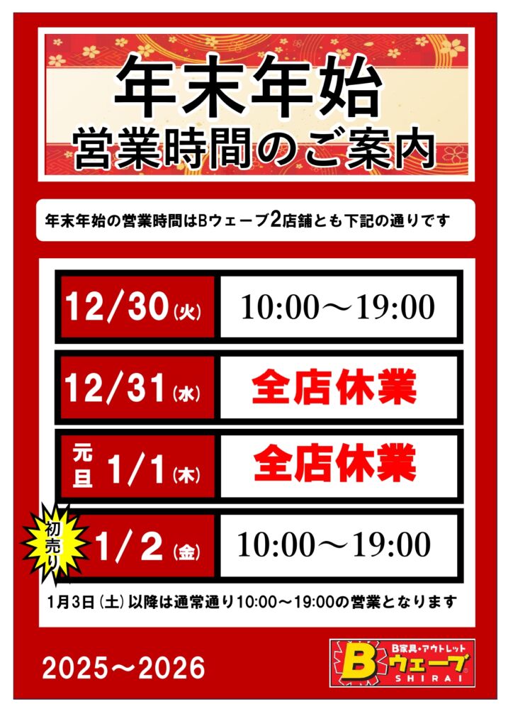 Bウェーブでは1月10日(土)午前10時より「新春・激安セール!」を