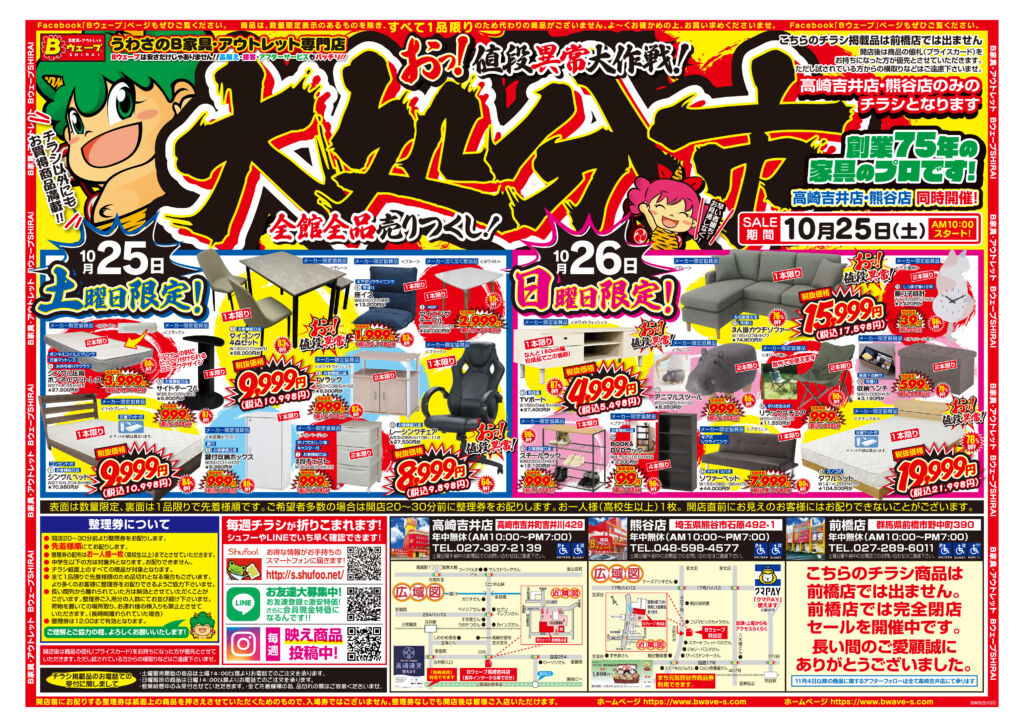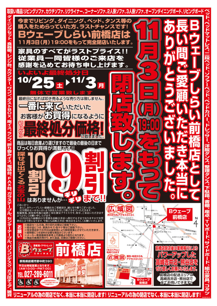 『前橋店・完全閉店セール!』10月18日(土)午前10時より開催です!