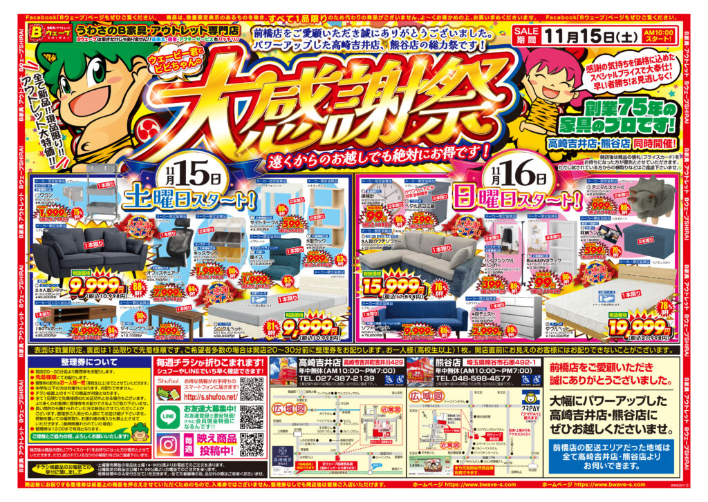 Bウェーブでは11月8日(土)午前10時より「大感謝祭!」を